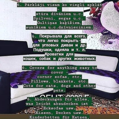 № 6. Pārklāji, gultas veļa, dzīvnieku gultiņas. vairāk № 7/1000. Montāža. Demontāža. Polikarbonāts. Santehnika. Mēbeles. Galdniecība. Saules paneļi. Celtniecība. Remonts. Siltumnīcas. Aksesuāri. vairāk № 8. Anglu valoda. Privatstundas. Pasniedzējs. Tulkas. Grupās, līdz 5 cilvēkiem, un individuāli. Samaksa EUR 15 | h. VAIRĀK№ 9. Grodu akas, ūdensvads, kanalizācija, meliorācija, zemes darbi. vairāk